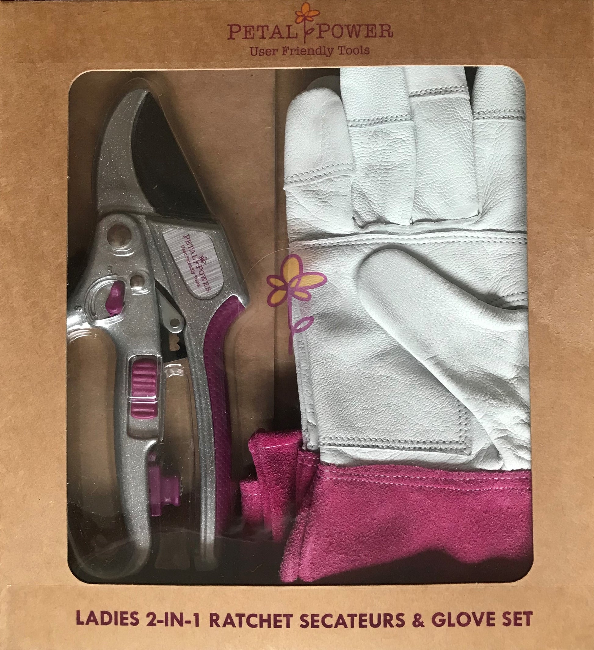 Ladies Gardening Glove & Ratchet Pruner Secateurs (Great for weaker hands) Set.