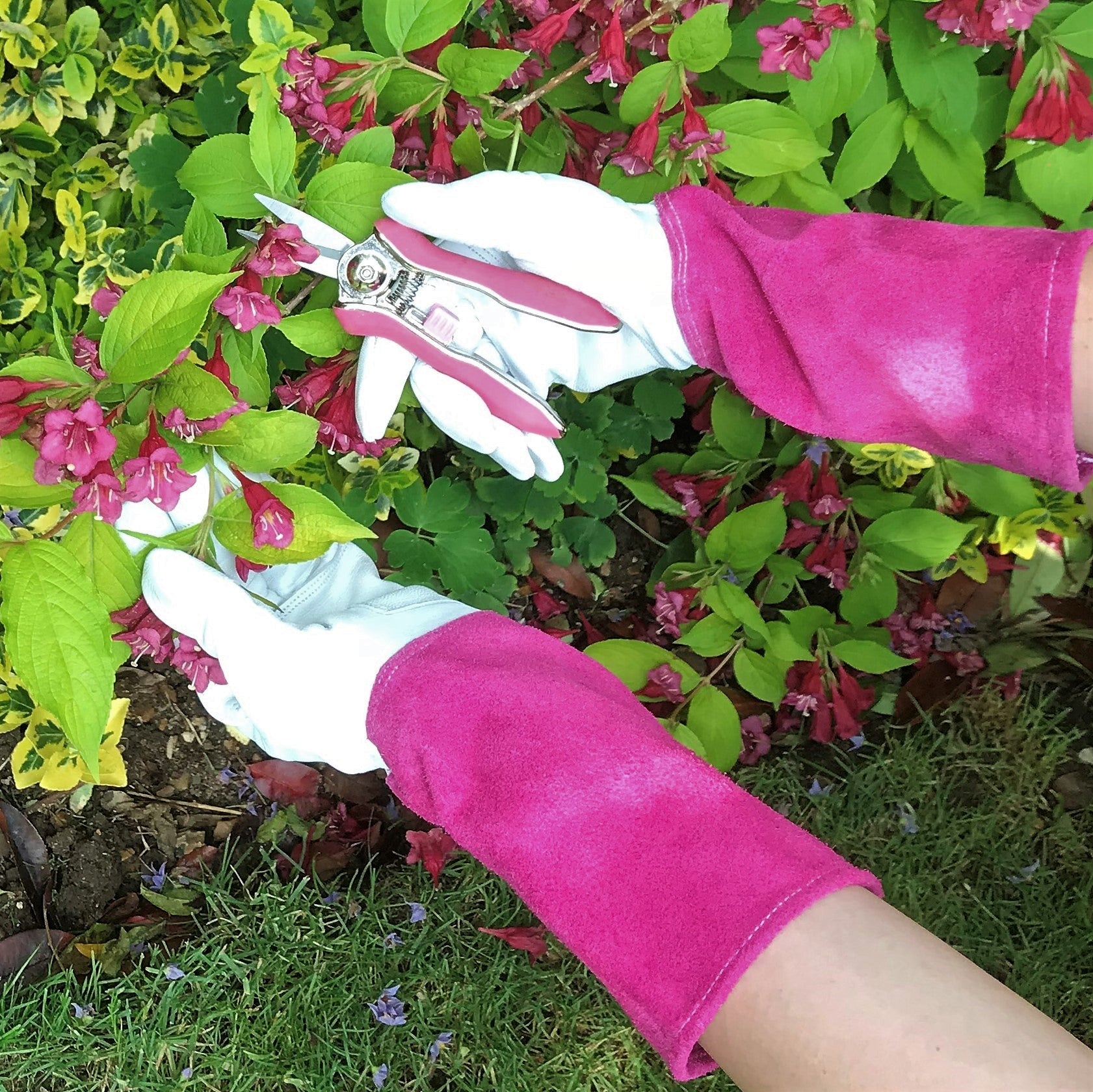 Petal Power Ladies Long Sleeve Gardening Gloves - Thorn Proof Leather Gauntlet Garden Gloves