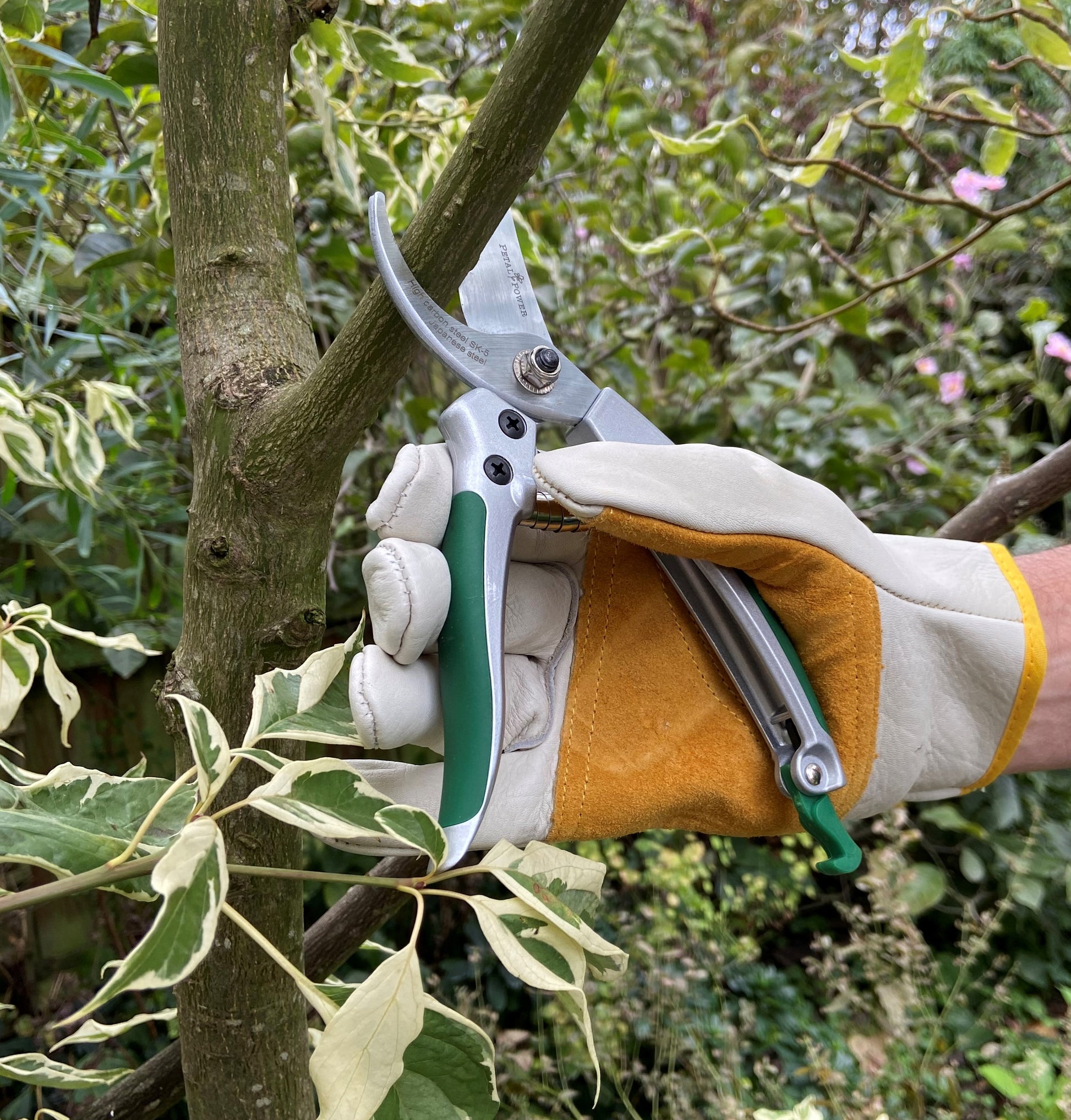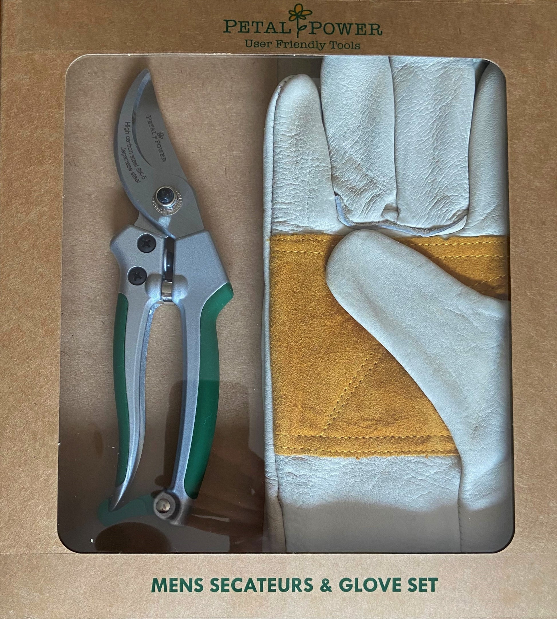 Petal Power Men's Leather Gardening Gloves & Bypass Secateurs Set - Ideal Garden Gift for men